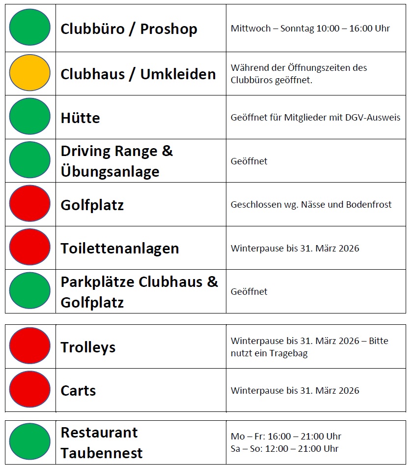 Der Platzreifekurs über vier Wochen findet im Frühjahr und Herbst am Sonntag zwischen 14:00 - 17:00 Uhr statt. Im Sommer am Freitag von 18:30 - 21:30 Uhr.statt. Ausrüstung, Bälle & Co. steht ihnen während des Kurses zur Verfügung.